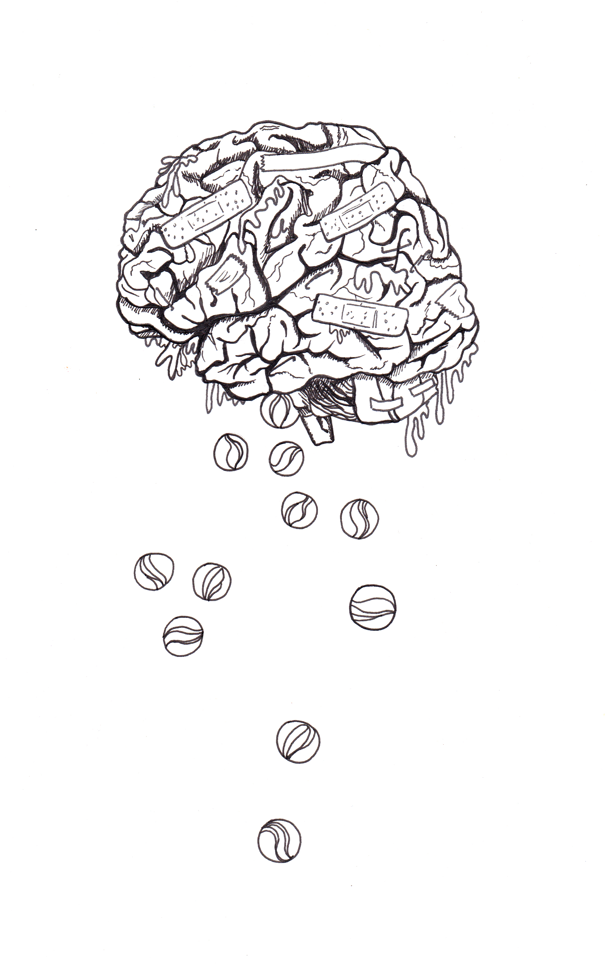 Ink drawing interpreting the idiom- ‘losing his marbles’