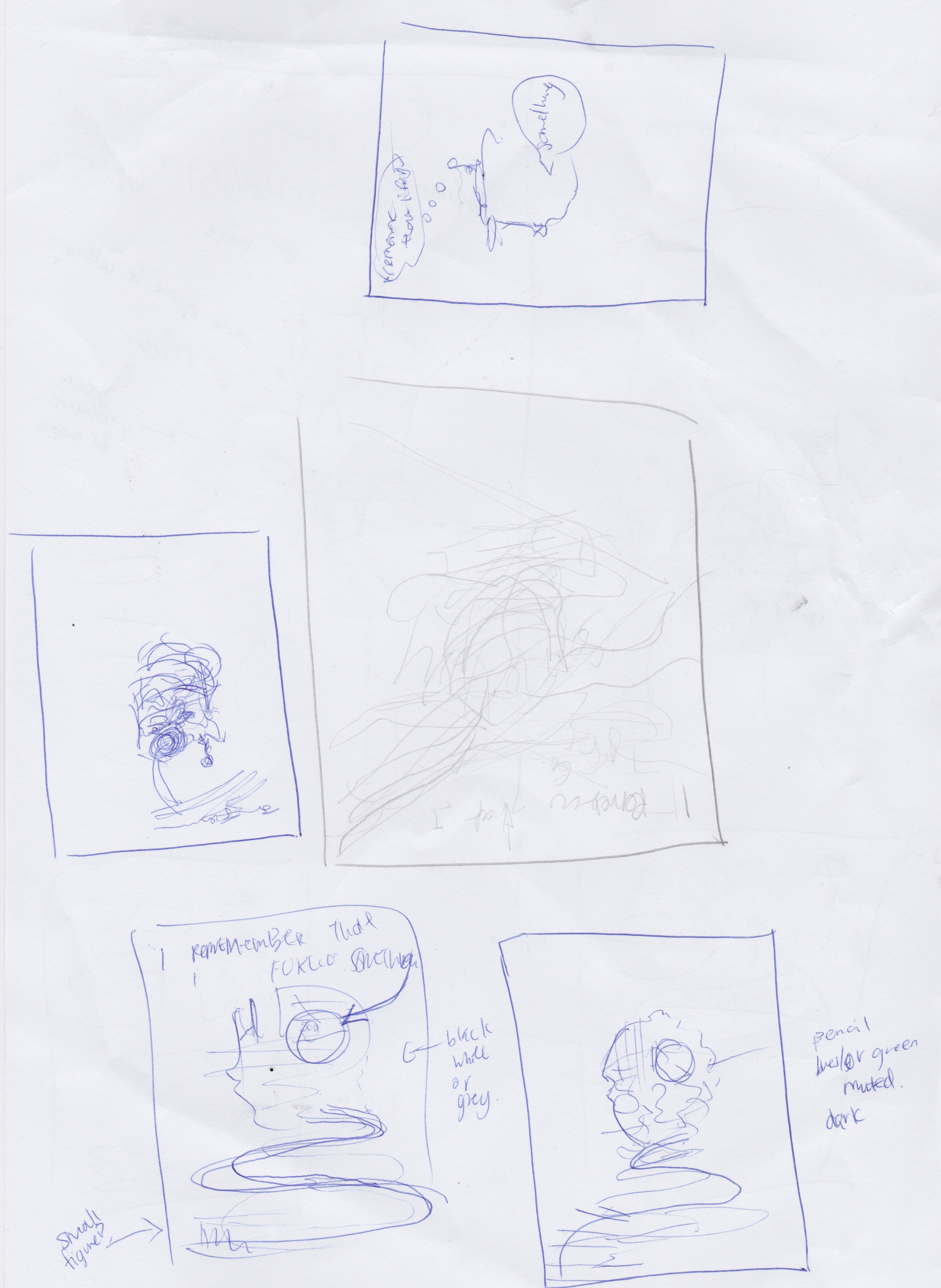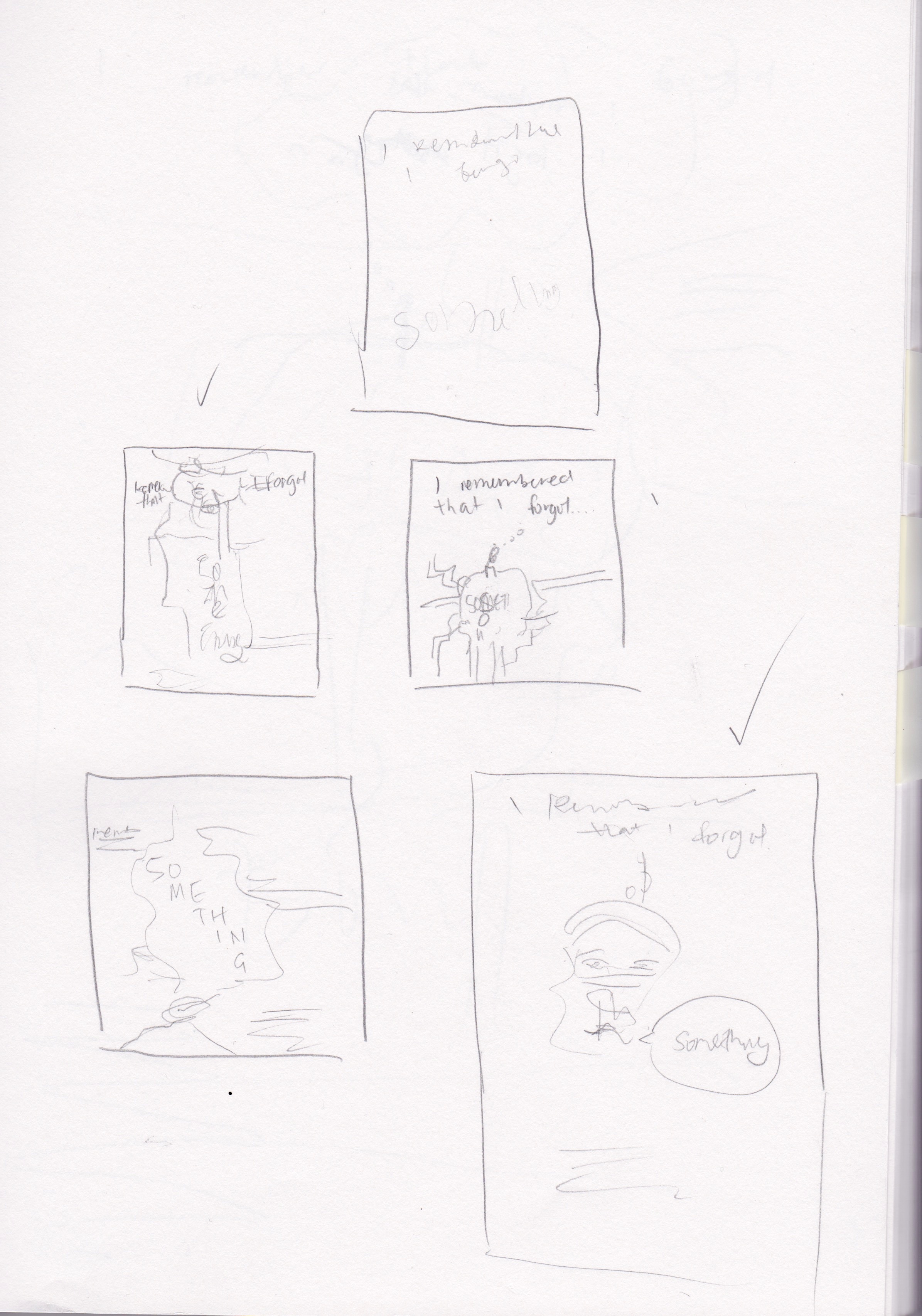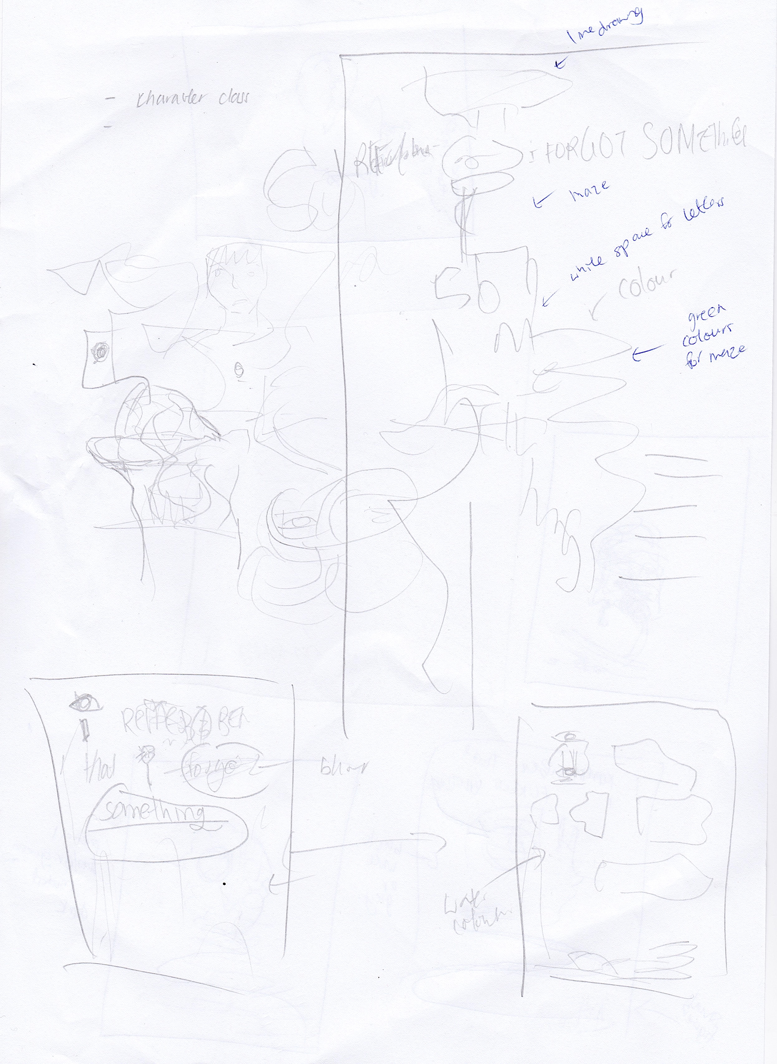 I particularly wanted to reflect the meaning of ‘something’ in this sentence- as being a blank/blurred concept that the protagonist is trying to recall.