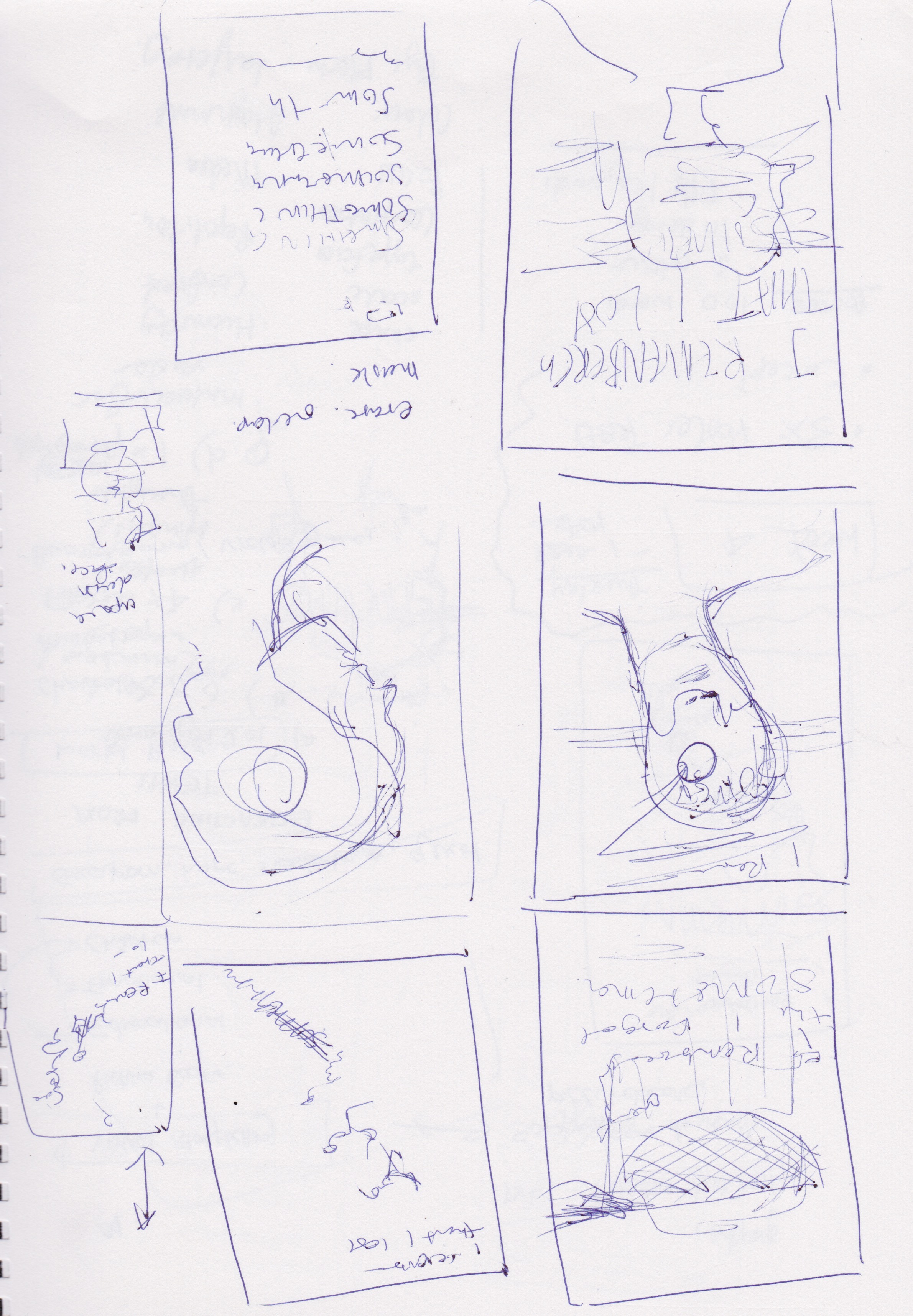Some of the ideas I came up with in this thumbnailing stage are ones that I think I may revisit in the project’s later illustrations. For example I like the idea of tiny figures working in the head factory/room.